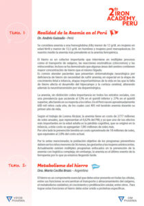 Realidad de la anemia en el Perú. Metabolismo del hierro. Diagnóstico adecuado de la deficiencia de hierro. Importancia del hierro en la mujer. Tratamiento y déficit de hierro y anemia en enfermedades digestivas.